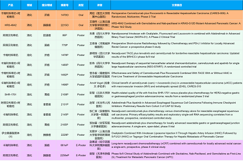 在消化系统肿瘤领域,EVO创新产品相关研究共入选2项口头报告、10项壁报和2项电子壁报,共14项研究。除了明星药物卡瑞利珠单抗和阿帕替尼外,还有5篇阿得贝利单抗治疗消化系统肿瘤的研究入选。此外,HRS-4642、瑞拉芙普-α注射液(SHR-1701)等未上市创新产品也有相应研究入选。随着新老药物前沿研究的不断推进,有望为消化系统肿瘤患者带来新的福音!