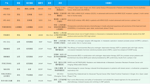在胸腺上皮肿瘤、头颈鳞癌、肉瘤、前列腺癌、甲状腺癌等其他多个疾病领域,卡瑞利珠单抗、阿帕替尼、瑞维鲁胺、阿得贝利单抗、法米替尼、HRS-7058、HRS-4642、HRS-5041等抗肿瘤创新药相关研究一共入选了4项口头报告、1项简短口头报告、5项壁报,彰显了EVO医药强大的研发实力。此外,海曲泊帕和昂丹司琼口溶膜分别在防治化疗导致的血小板减少和恶心呕吐方面各有1项研究入选壁报。